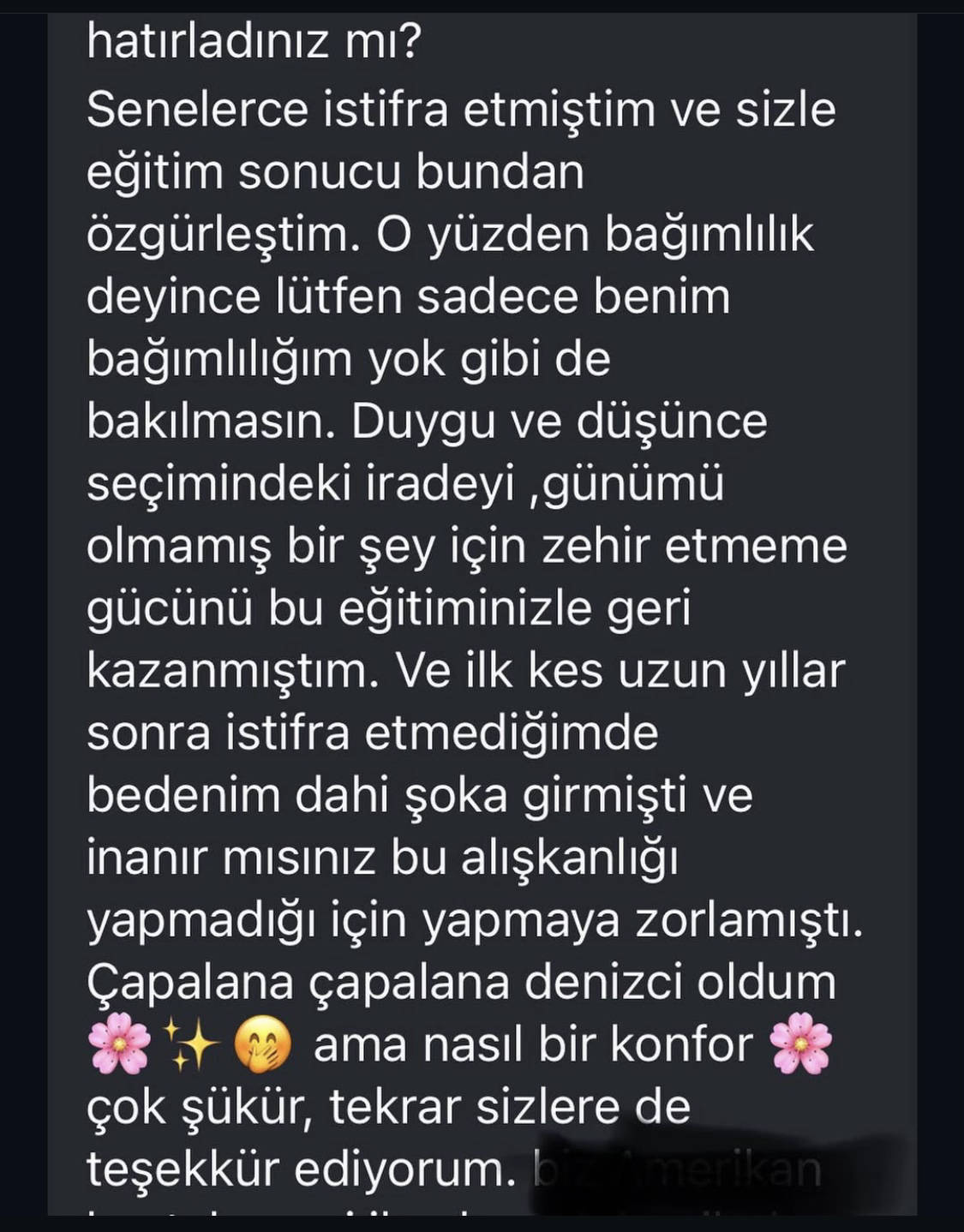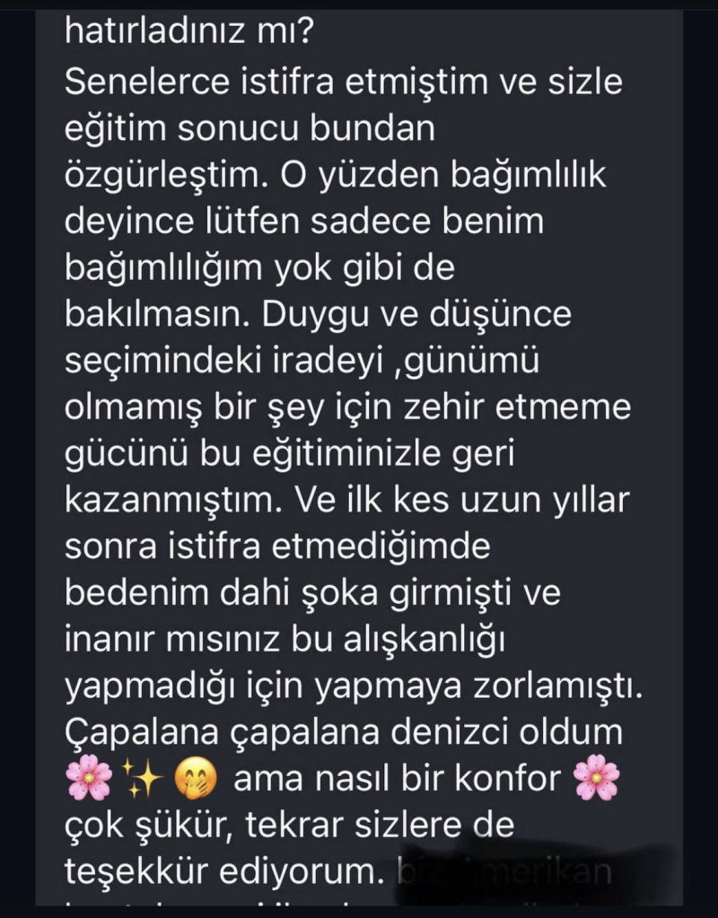 Bu eğitim, bağımlılığı bıraktırma eğitimi değildir ve bağımlılık bıraktırma vaadi içermez, kendi davranışlarınızı tanımanız ve farkındalık geliştirerek bilinçli seçimler yapabilmeniz için beceriler öğretir. Spesifik bağımlılık için katılmak isteyenler için bir ruh sağlığı uzmanı desteği ile eşzamanlı yürütülürse güvenlidir ve en yüksek faydayı sağlar.